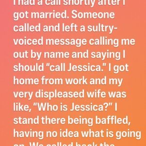 I had a call shortly after I got married. Someone called and left a sultry-voiced message calling me out by name and saying I should “call Jessica.”…
