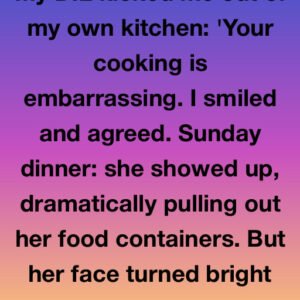My DIL kicked me out of my own kitchen: ‘Your cooking is embarrassing.’ I smiled and agreed. Sunday dinner: she showed up, dramatically pulling out her food…