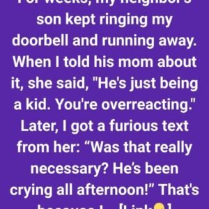 For weeks, my neighbor’s son kept ringing my doorbell and running away. When I told his mom about it, she said, “He’s just being a kid. You’re…