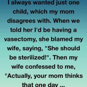 I always wanted just one child, which my mom disagrees with. When we told her I’d be having a vasectomy, she blamed my wife, saying, “She should…