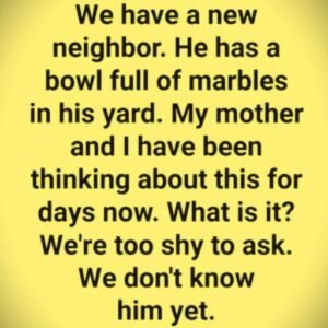 We have a new neighbor. He has a bowl full of marbles in his yard. My mother and I have been thinking about this for days now….