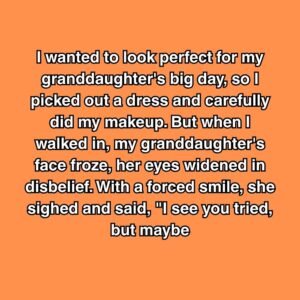 I wanted to look perfect for my granddaughter’s big day, so I picked out a dress and carefully did my makeup. But when I walked in, my…