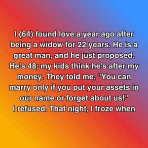 I (64) found love a year ago after being a widow for 22 years. He is a great man, and he just proposed. He’s 48; my kids…