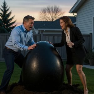I came home early from a business trip to surprise my husband. But he wasn’t in the house. I found him in our backyard, frantically digging a hole next to a massive, glossy black egg. When he saw me, he panicked and yelled at me to go inside, refusing to explain. I couldn’t sleep. The next morning, as soon as he left for work, I grabbed a shovel and went to the same spot. My heart pounded as I dug, and after ten minutes, the shovel hit something hard with a dull thud…