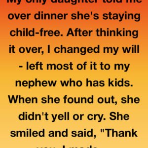 My only daughter told me over dinner she’s staying child-free. After thinking it over, I changed my will—left most of it to my nephew who has kids….