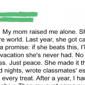 I’m Vera, 17. After my mom survived cancer, I promised myself I’d give her something she’d always dreamed of: a week at the ocean. So I worked…