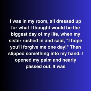 I was in my room, all dressed up for what I thought would be the biggest day of my life, when my sister rushed in and said,…