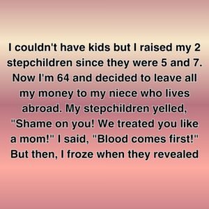 I couldn’t have kids but I raised my 2 stepchildren since they were 5 and 7. Now I’m 64 and decided to leave all my money to…