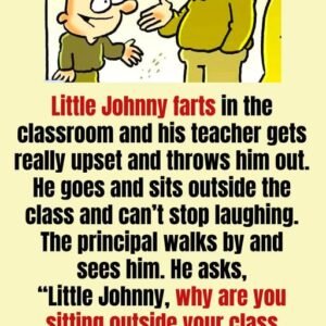 Little Johnny lets out a fart in the classroom, causing his teacher to become upset and eject him from the room. A Laugh Outside Seated outside the…