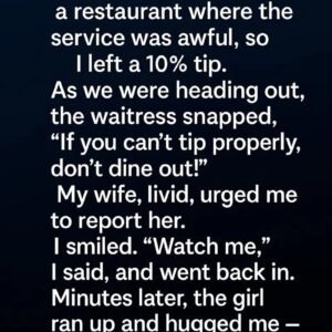 The restaurant buzzed with chaos the night my wife and I stopped in for dinner, the kind of evening where every server looked stretched thin. Our waitress…