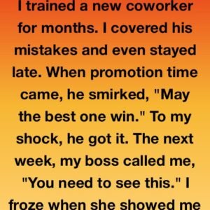I trained a new coworker for months. I covered his mistakes, fixed his reports, and even stayed late more times than I can count. He always joked…