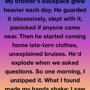 My brother’s backpack grew heavier each day. He guarded it obsessively, slept with it, panicked if anyone came near. Then he started coming home late—torn clothes, unexplained…