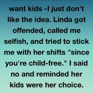 I told coworkers I don’t want kids -I just don’t like the idea. Linda got offended, called me selfish, and tried to stick me with her shifts…