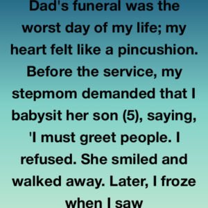 Dad’s funeral was the worst day of my life; my heart felt like a pincushion. Before the service, my stepmom demanded that I babysit her son (5),…
