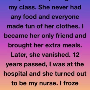 In fifth grade, Amy was the girl everyone overlooked — too-short sleeves, taped-up shoes, and often nothing in her lunchbox. The first time I noticed her pretending…
