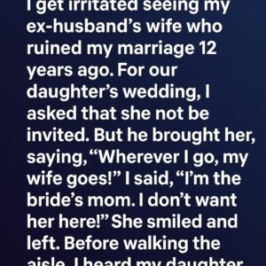 I get irritated seeing my ex-husband’s wife who ruined my marriage 12 years ago. For our daughter’s wedding, I asked that she not be invited. But he…