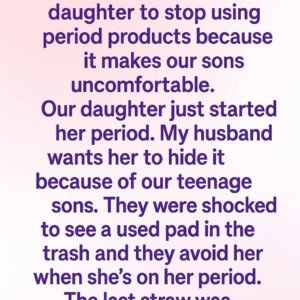 My husband wants our daughter to stop using period products because it makes our sons uncomfortable. Our daughter just started her period. My husband wants her to…