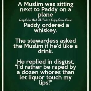 A Muslim was sitting next to Paddy on a plane. Keep Calm And Oh Feck It Enjoy Some Craic Paddy ordered a whiskey. The stewardess asked the…
