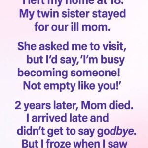 I walked out of our house at eighteen with a suitcase full of stubborn dreams and a mouth full of pride. My twin sister stayed behind, choosing…
