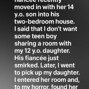 My ex-husband’s fiancée recently moved in with her 14 y.o. son into his two-bedroom house. I said that I don’t want some teen boy sharing a room…