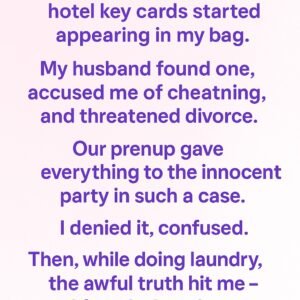 Months after our wedding, hotel key cards started appearing in my bag. My husband found one, accused me of cheating, and threatened divorce. Our prenup gave everything…