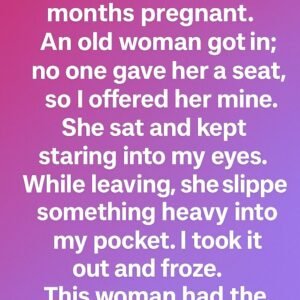 I was riding the bus, seven months pregnant and feeling both excited and tired. When an older woman boarded, I offered her my seat without a second…