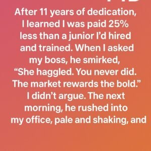 After 11 years of dedication, I learned I was paid 25% less than a junior I’d hired and trained. When I asked my boss, he smirked, “She…