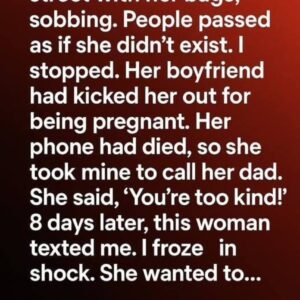 I saw a woman on the street, sitting on the curb with her bags beside her, sobbing as strangers walked by pretending not to notice. Something in…