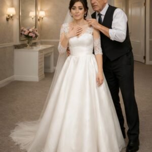 During the wedding, the bride went to the restroom for a few minutes, but a cleaner stopped her at the door and quietly said, “Your groom put…