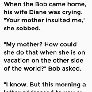 The Letter When the Bob came home, his wife Diane was crying. “Your mother insulted me,” she sobbed. “My mother? How could she do that when she…