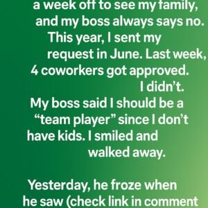 Every Christmas, I ask for a week off to see my family, and my boss always says no. This year, I sent my request in June. Last…
