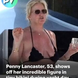 Penny Lancaster didn’t just turn heads in Sardinia — she stopped time. One black bikini. One blazing deck. One rock legend by her side. Laughter from children…
