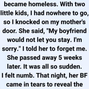 even briefly, had been a gift, reminding me that compassion often comes from those who understand a similar kind of pain. When I left her home that evening, I wasn’t magically healed, but I felt lighter, as though a small piece of my heart had begun to settle.