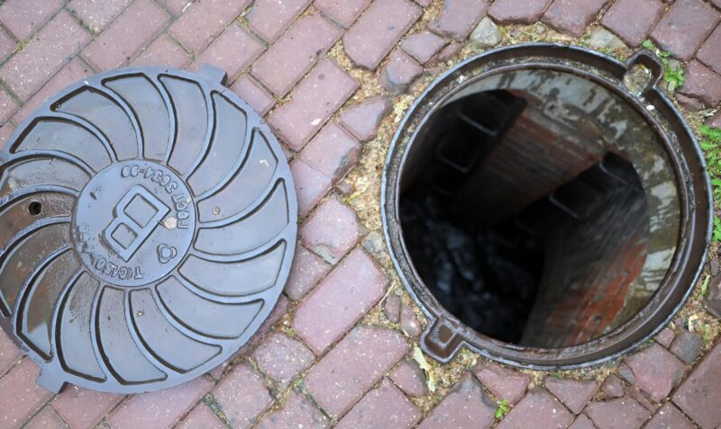 The cat led him through courtyards until they reached an old pit, half-filled with rainwater.