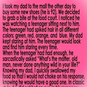 I took my dad to the mall the other day to buy some new shoes (he is 92). We decided to grab a bite at the food…