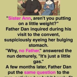 “Sister Ann, aren’t you putting on a little weight?” inquired Father Dan during his visit to the convent, suspiciously eyeing her bulging stomach. “Why, no Father,” answered…