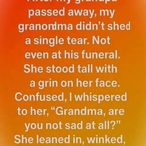 Not even at his funeral did she cry. My grandma stood tall with calm strength and a gentle smile. Confused, I whispered, “Grandma, aren’t you sad?” She…