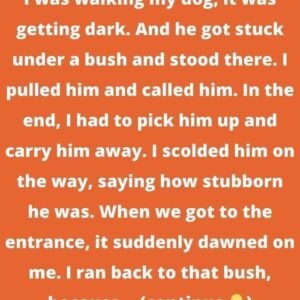 I was walking my dog, it was getting dark. And he got stuck under a bush and stood there. I pulled him and called him. In the…