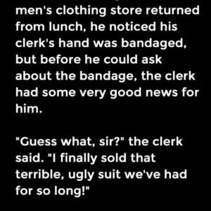 When the manager of a men’s clothing store returned from lunch, he noticed his clerk’s hand was bandaged, but before he could ask about the bandage, the…