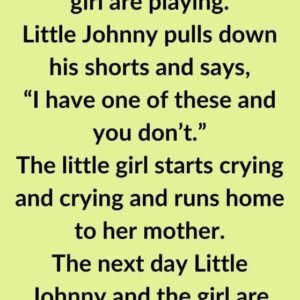 Little Johnny and a little girl are playing. Little Johnny pulls down his shorts and says, “I have one of these and you don’t.” The little girl…