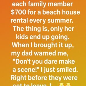 Every summer, my stepmother announced the same plan with the same cheerful tone: she had rented a beach house for the family, and each adult was expected…