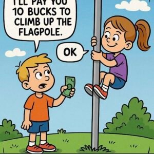 Boy: I’ll pay you 10 bucks to climb up the flagpole. Girl: ok. (climbs the flagpole) Girl:…CONTINUE READING BELOW