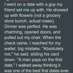 I went on a date with a guy my friend set me up with. He showed up with flowers (not a grocery store bunch, actual roses). Dinner…