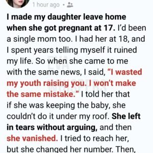The Knock at the Door When my daughter told me she was pregnant at seventeen, I did the cruelest thing a mother can do. I turned her…