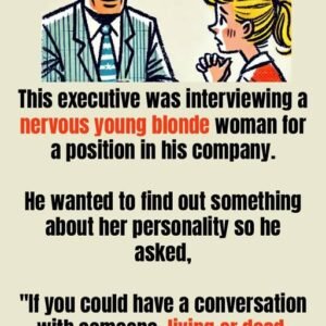 This executive was interviewing a nervous young blonde woman for a position in his company. He wanted to find out something about her personality so he asked,…