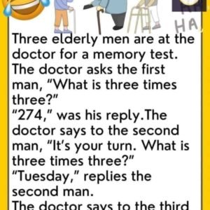 Three elderly men are at the doctor for a memory test. The doctor asks the first man, “What is three times three?” “274,” was his reply. The…