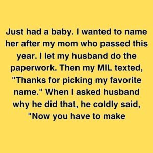 Just had a baby. I wanted to name her after my mom who passed this year. I let my husband do the paperwork. Then my MIL texted,…