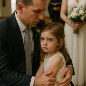 I never imagined I’d be standing at the altar again, hands trembling, while my daughter clung tightly to my leg. “Dad,” she whispered urgently, her big blue…