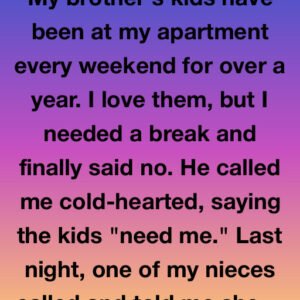 My brother’s kids have been at my apartment every weekend for over a year. I love them, but I needed a break and finally said no. He…