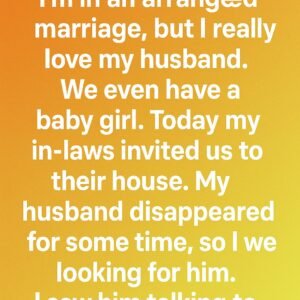 I’m in an arranged marriage, but I really love my husband. We even have a baby girl. Today my in-laws invited us to their house. My husband…
